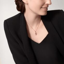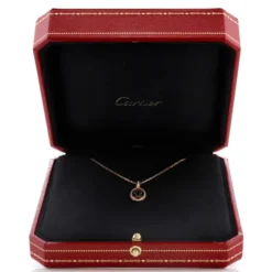 Presenting the Double C de Cartier Logo Necklace, a perfect fusion of elegance and luxury. Crafted in 18K rose gold, this exquisite necklace is adorned with the iconic Double C de Cartier logo, intricately set with 37 brilliant-cut diamonds, totaling 0.10 carats. Each diamond is meticulously placed to catch the light, adding a subtle yet captivating sparkle that enhances the beauty of the piece.