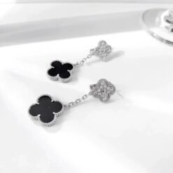 Complemented by two rich onyx stones, each pair is a unique masterpiece, reflecting the natural beauty of its materials. The design includes a clip-back clasp with a detachable stem in 18K white gold, offering versatility and sophistication for any occasion.